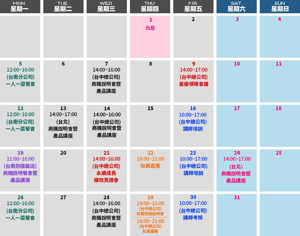 行事曆calendar