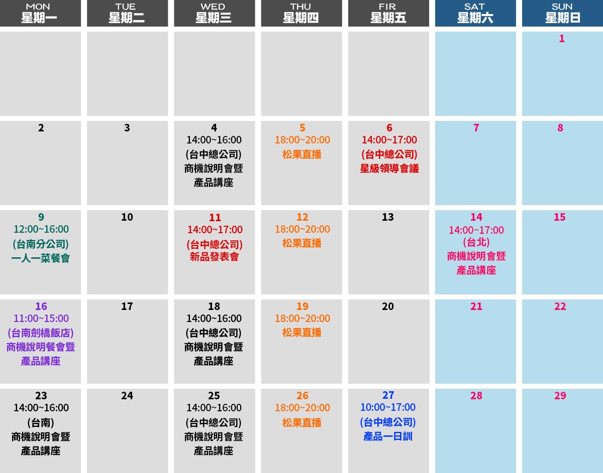 行事曆calendar